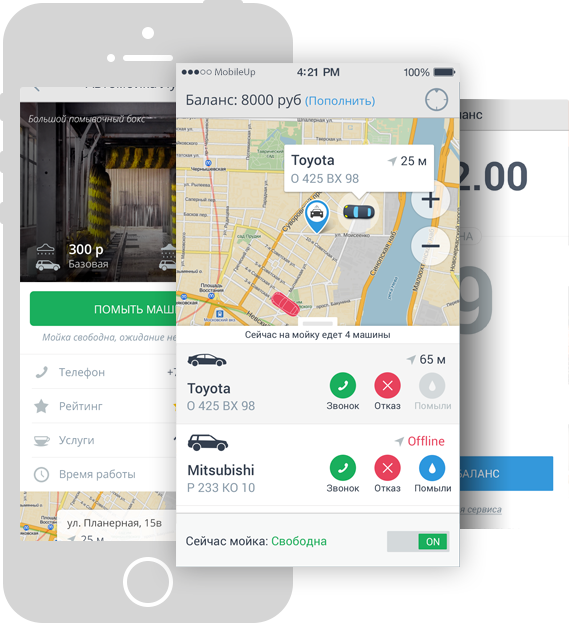 Bütün avto-yuma mərkəzlərinin vəziyyəti real vaxt göstərilir. Avto-yuma mərkəzinə gedin, onlar artıq sizi orada gözləyirlər. Proqram təqribi səyahət vaxtını və ən uyğun marşrutu göstərəcəkdir.